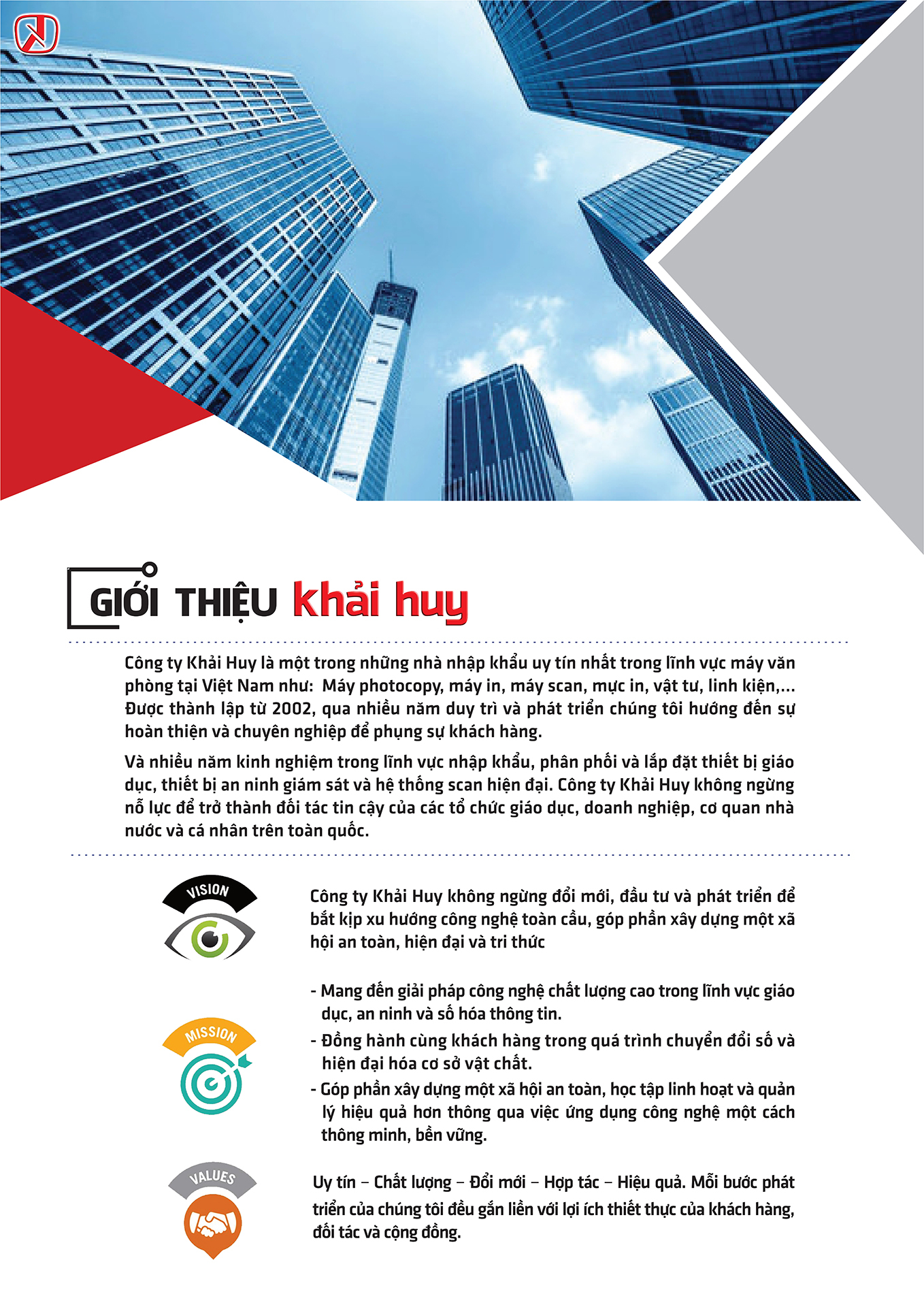 Hồ sơ năng lực Khải Huy là bản tổng quan toàn diện về năng lực, dịch vụ và những giá trị cốt lõi mà chúng tôi mang đến cho đối tác. Từ tư vấn chiến lược số, phát triển phần mềm, thiết kế hệ thống ERP đến các giải pháp công nghệ tùy chỉnh – chúng tôi cam kết đồng hành cùng bạn trên từng chặng đường đổi mới.